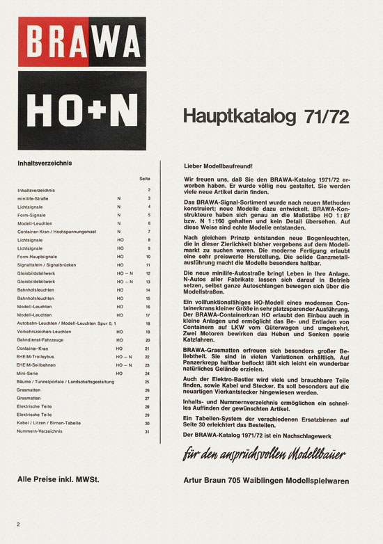 BRAWA Modellbahnzubehör H0 + N Katalog 1971-1972