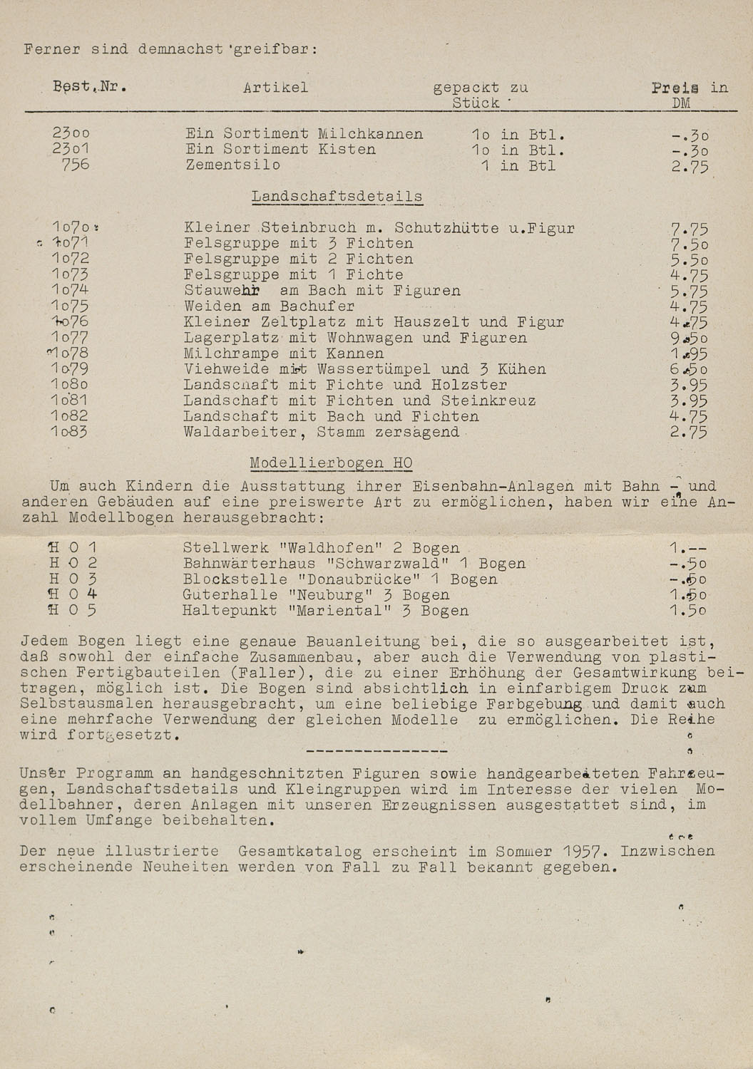Preiser Messeneuheiten Plastik-Artikel 1957